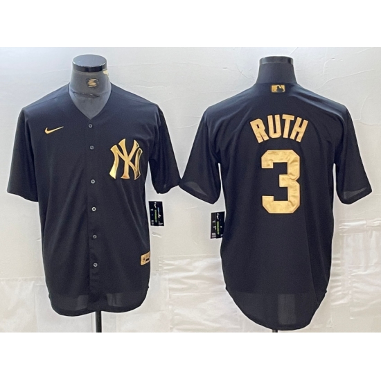 Men's New York Yankees #3 Babe Ruth Black Gold Cool Base Stitched Jersey