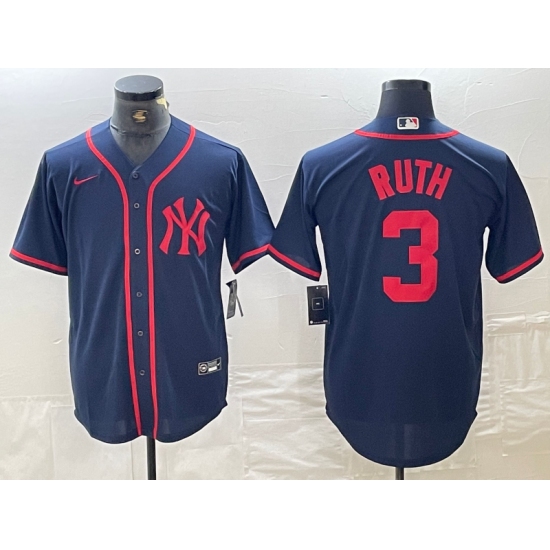 Men's New York Yankees #3 Babe Ruth Navy Red Fashion Cool Base Jersey