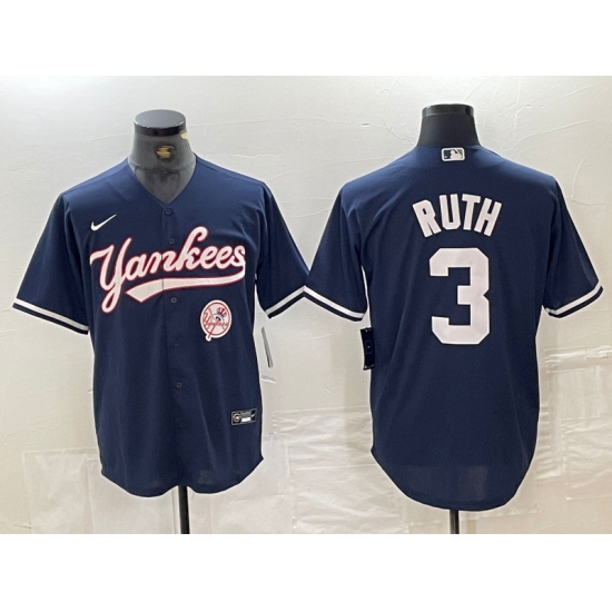 Men's New York Yankees #3 Babe Ruth Navy With Cool Base Stitched Baseball Jersey