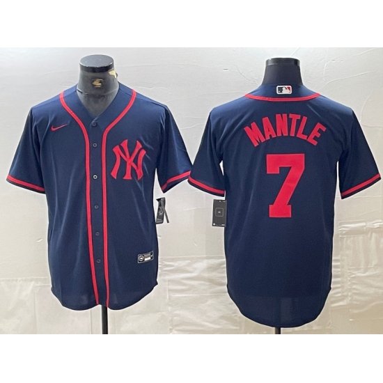 Men's New York Yankees #7 Mickey Mantle Navy Red Fashion Cool Base Jersey