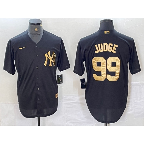 Men's New York Yankees #99 Aaron Judge Black Gold Cool Base Stitched Jersey
