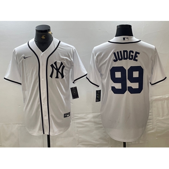 >Men's New York Yankees #99 Aaron Judge White Fashion Cool Base Jersey