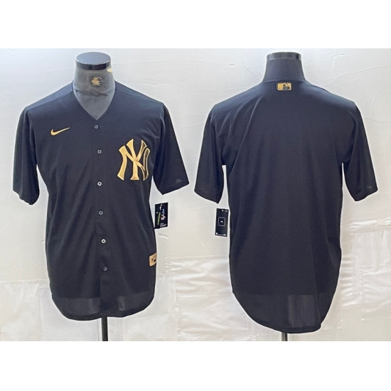 Men's New York Yankees Blank Black Gold Cool Base Stitched Jersey