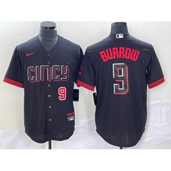 Home>MLB>Cincinnati Reds>Joe Burrow>Men's Nike Cincinnati Reds #9 Joe Burrow Number Black 2023 City Connect Cool Base Stitched Baseball Jersey