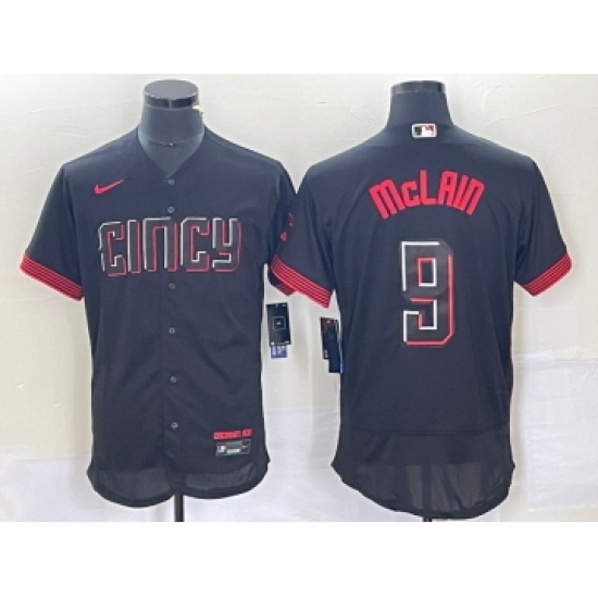 Men's Nike Cincinnati Reds #9 Matt McLain Black 2023 City Connect Flex Base Stitched Jersey1