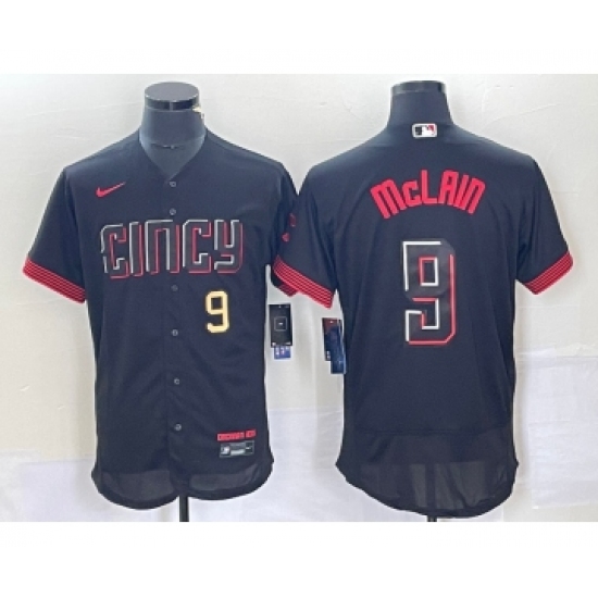 Men's Nike Cincinnati Reds #9 Matt McLain Number Black 2023 City Connect Flex Base Stitched Jersey1