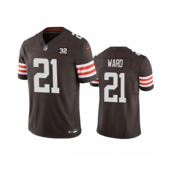 >Men's Nike Cleveland Browns #21 Denzel Ward Brown 2023 F.U.S.E. Jim Brown Memorial Vapor Untouchable Limited Football Stitched Jersey