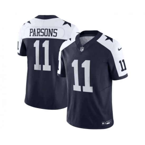 >Men's Nike Dallas Cowboys #11 Micah Parsons Navy Thanksgiving 2023 F.U.S.E. Limited Stitched Football Jersey