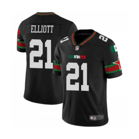 >Men's Nike Dallas Cowboys #21 Ezekiel Elliott Black Mexico Vapor Limited Stitched Football Jersey