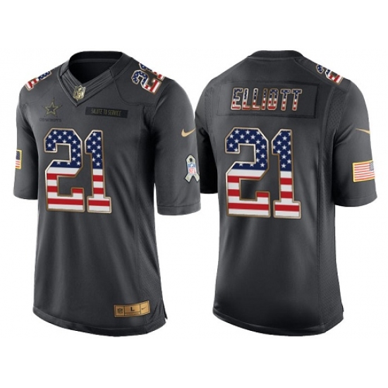 Men's Nike Dallas Cowboys #21 Ezekiel Elliott Limited Black USA Flag Salute To Service NFL Jersey