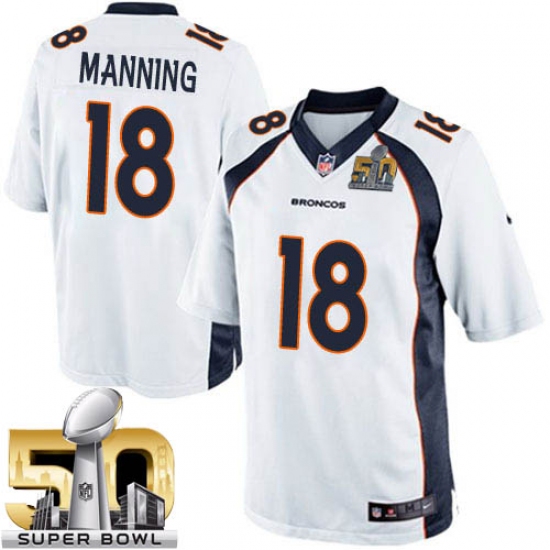 Men's Nike Denver Broncos #18 Peyton Manning Limited White Super Bowl 50 Bound NFL Jersey