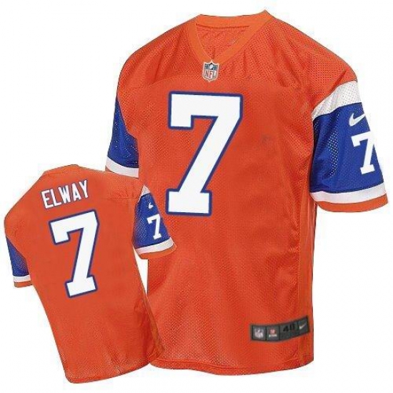 Men's Nike Denver Broncos #7 John Elway Elite Orange Throwback NFL Jersey