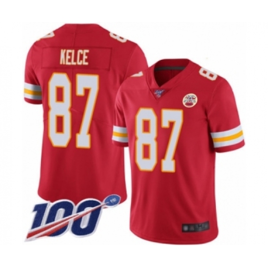Men's Nike Kansas City Chiefs #87 Travis Kelce Red Team Color Vapor Untouchable Limited Player 100th Season NFL Jersey