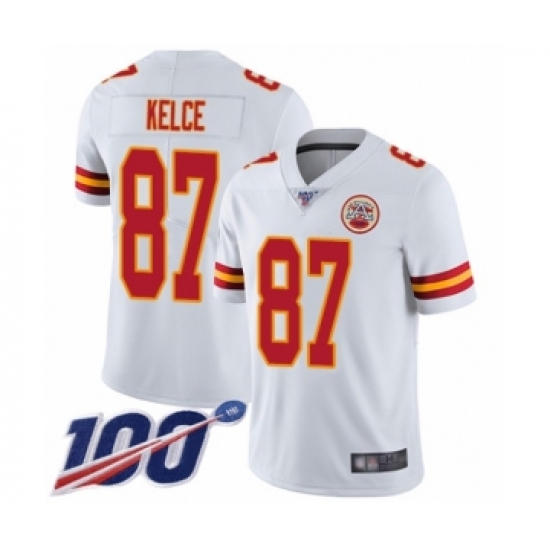 Men's Nike Kansas City Chiefs #87 Travis Kelce White Vapor Untouchable Limited Player 100th Season NFL Jersey