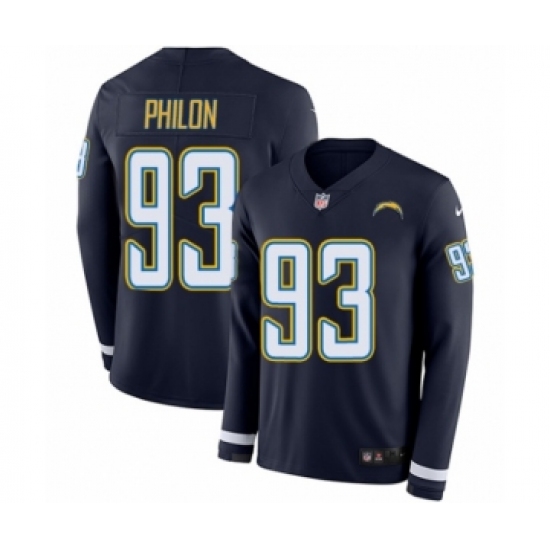 Men's Nike Los Angeles Chargers #93 Darius Philon Limited Navy Blue Therma Long Sleeve NFL Jersey