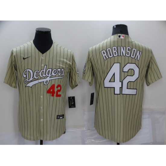 Men's Los Angeles Dodgers #42 Jackie Robinson Navy Blue Gold Pinstripe Stitched MLB Cool Base Nike Jersey