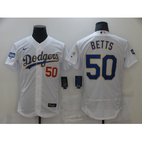 Men's Nike Los Angeles Dodgers #50 Mookie Betts White Champions Authentic Jersey