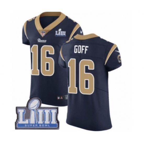 Men's Nike Los Angeles Rams #16 Jared Goff Navy Blue Team Color Vapor Untouchable Elite Player Super Bowl LIII Bound NFL Jersey