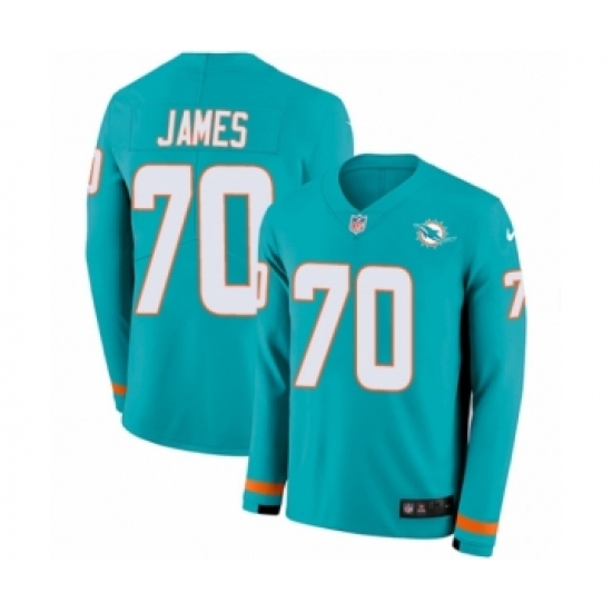 Men's Nike Miami Dolphins #70 Ja'Wuan James Limited Aqua Therma Long Sleeve NFL Jersey
