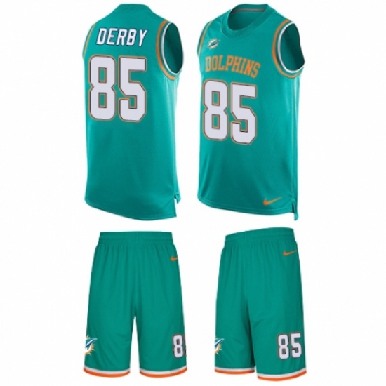 Men's Nike Miami Dolphins #85 A.J. Derby Limited Aqua Green Tank Top Suit NFL Jersey
