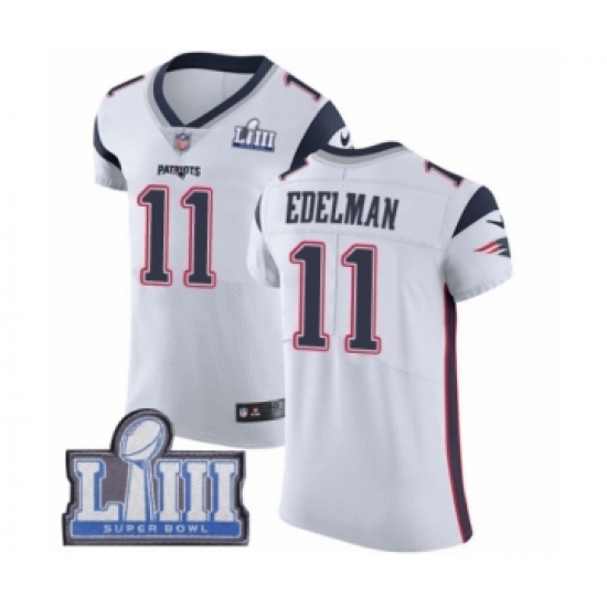Men's Nike New England Patriots #11 Julian Edelman White Vapor Untouchable Elite Player Super Bowl LIII Bound NFL Jersey