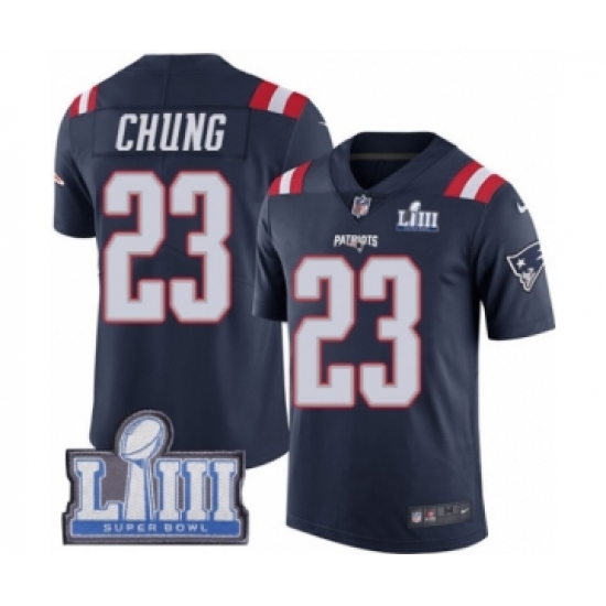 >Men's Nike New England Patriots #23 Patrick Chung Limited Navy Blue Rush Vapor Untouchable Super Bowl LIII Bound NFL Jersey