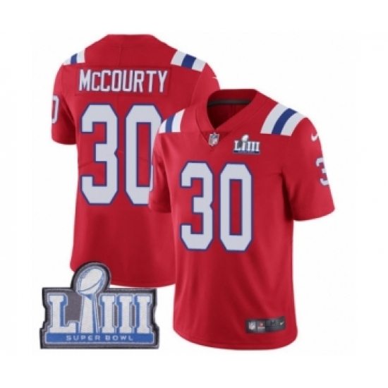 >Men's Nike New England Patriots #30 Jason McCourty Red Alternate Vapor Untouchable Limited Player Super Bowl LIII Bound NFL Jersey