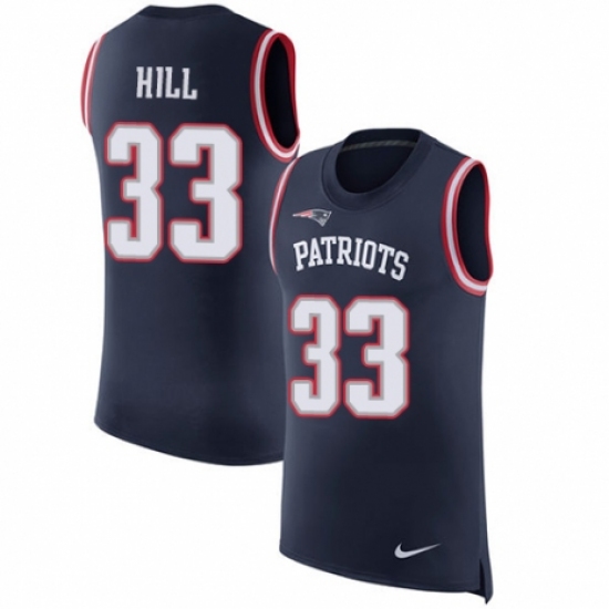 Men's Nike New England Patriots #33 Jeremy Hill Navy Blue Rush Player Name & Number Tank Top NFL Jersey