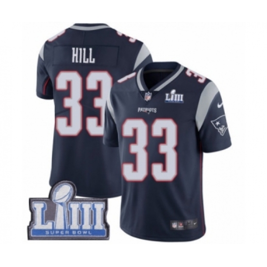 Men's Nike New England Patriots #33 Jeremy Hill Navy Blue Team Color Vapor Untouchable Limited Player Super Bowl LIII Bound NFL Jersey