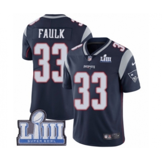 >Men's Nike New England Patriots #33 Kevin Faulk Navy Blue Team Color Vapor Untouchable Limited Player Super Bowl LIII Bound NFL Jersey