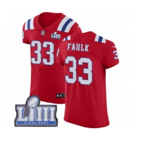 >Men's Nike New England Patriots #33 Kevin Faulk Red Alternate Vapor Untouchable Elite Player Super Bowl LIII Bound NFL Jersey
