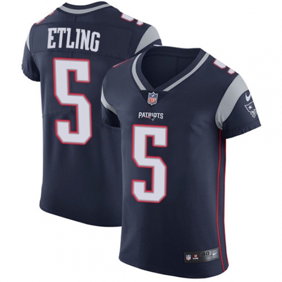 Men's Nike New England Patriots #5 Danny Etling Navy Blue Team Color Vapor Untouchable Elite Player NFL Jersey