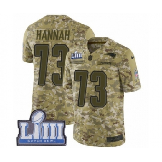 Men's Nike New England Patriots #73 John Hannah Limited Camo 2018 Salute to Service Super Bowl LIII Bound NFL Jersey