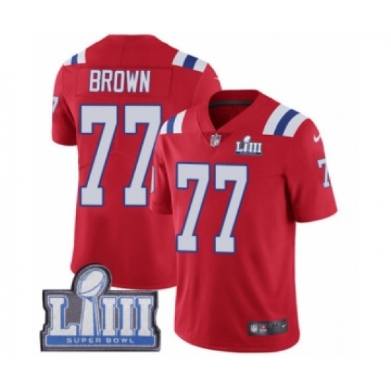Men's Nike New England Patriots #77 Trent Brown Red Alternate Vapor Untouchable Limited Player Super Bowl LIII Bound NFL Jersey