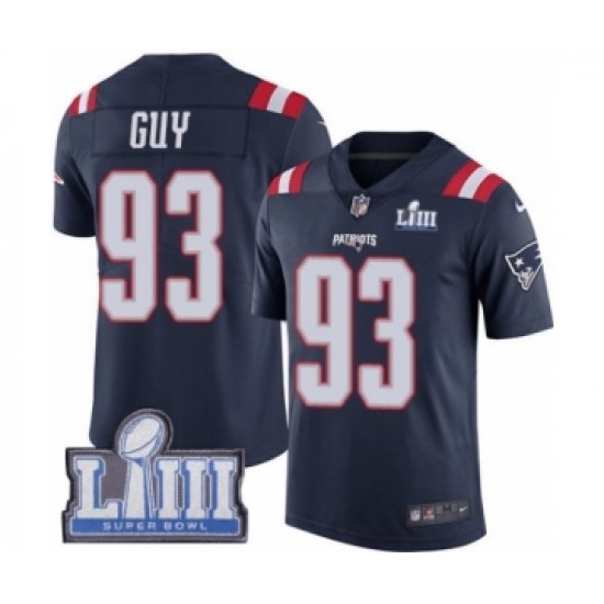 Men's Nike New England Patriots #93 Lawrence Guy Limited Navy Blue Rush Vapor Untouchable Super Bowl LIII Bound NFL Jersey