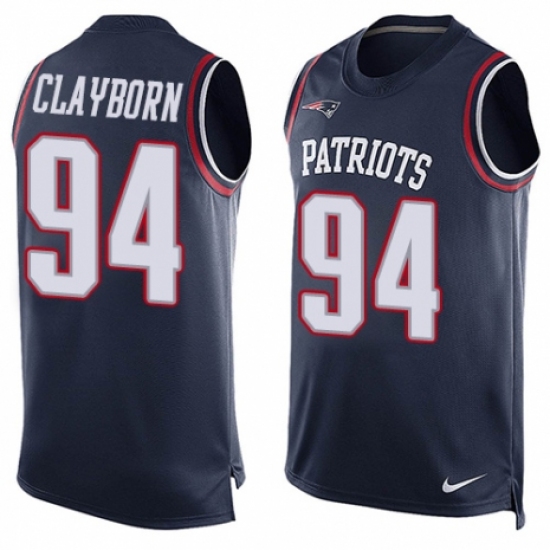 Men's Nike New England Patriots #94 Adrian Clayborn Limited Navy Blue Player Name & Number Tank Top NFL Jersey