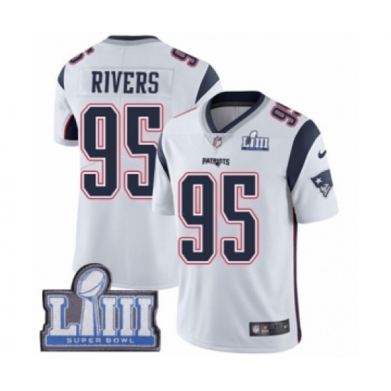 Men's Nike New England Patriots #95 Derek Rivers White Vapor Untouchable Limited Player Super Bowl LIII Bound NFL Jersey