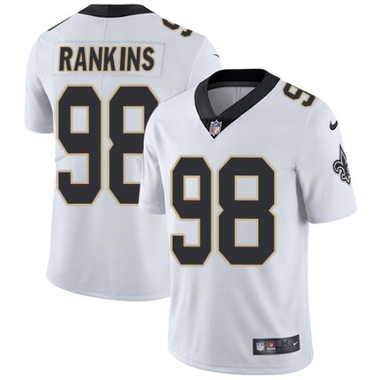 Men's Nike New Orleans Saints #98 Sheldon Rankins White Vapor Untouchable Limited Player NFL Jersey