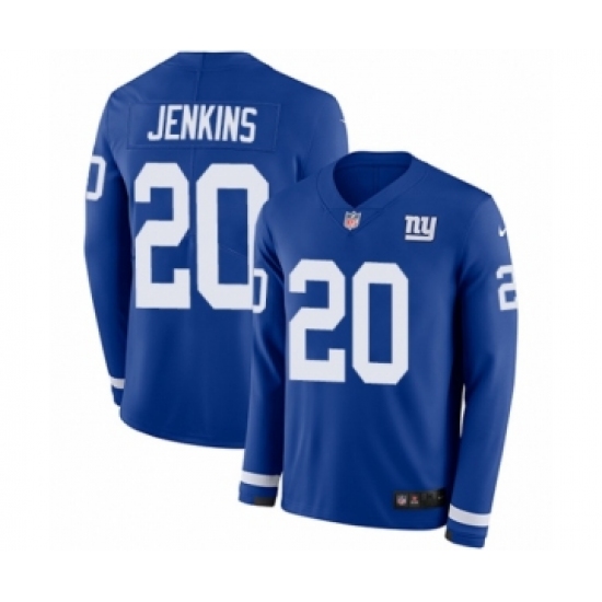 >Men's Nike New York Giants #20 Janoris Jenkins Limited Royal Blue Therma Long Sleeve NFL Jersey