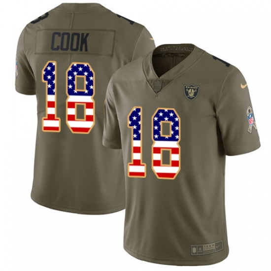 Men's Nike Oakland Raiders #18 Connor Cook Limited Olive/USA Flag 2017 Salute to Service NFL Jersey