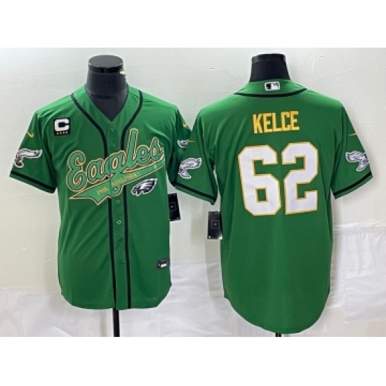 Men's Nike Philadelphia Eagles #62 Jason Kelce Green Gold C Cool Base Stitched Baseball Jersey