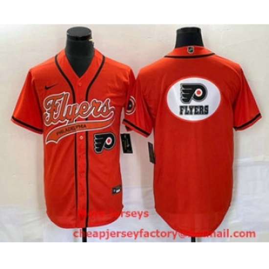 Men's Nike Philadelphia Flyers Orange Team Big Logo Cool Base Stitched Baseball Jersey