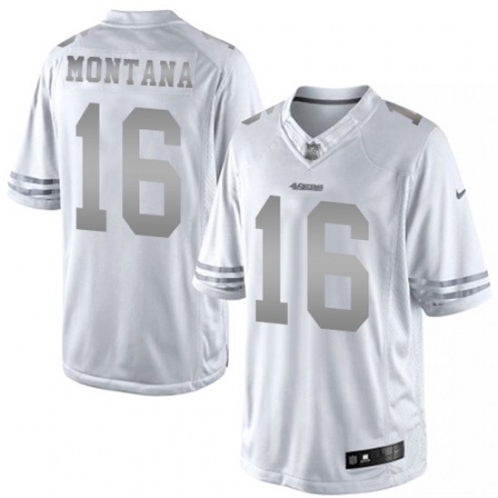 Men's Nike San Francisco 49ers #16 Joe Montana Limited White Platinum NFL Jersey