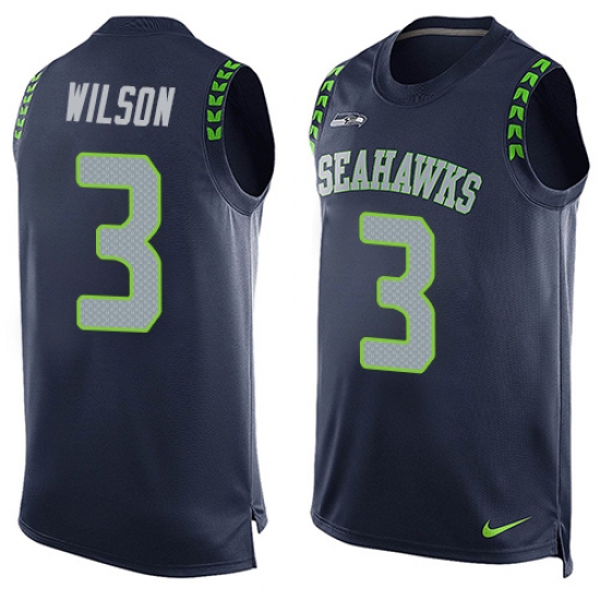 Men's Nike Seattle Seahawks #3 Russell Wilson Limited Steel Blue Player Name & Number Tank Top NFL Jersey