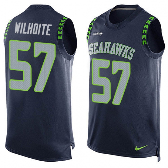 Home>NFL>Seattle Seahawks>Michael Wilhoite>Men's Nike Seattle Seahawks #57 Michael Wilhoite Limited Steel Blue Player Name & Number Tank Top NFL Jersey