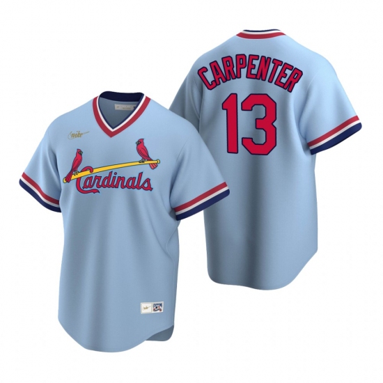 >Men's Nike St. Louis Cardinals #13 Matt Carpenter Light Blue Cooperstown Collection Road Stitched Baseball Jersey