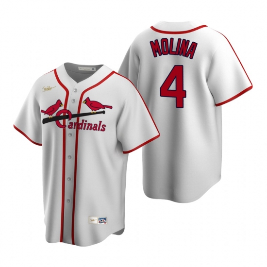 Men's Nike St. Louis Cardinals #4 Yadier Molina White Cooperstown Collection Home Stitched Baseball Jersey