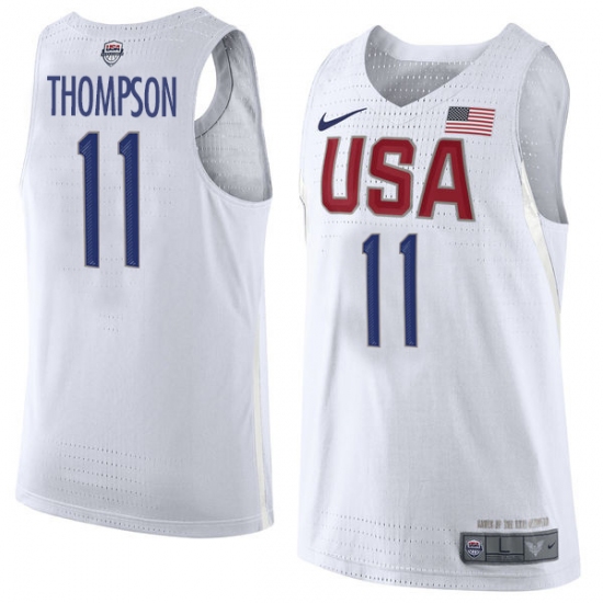 Men's Nike Team USA #11 Klay Thompson Authentic White 2016 Olympic Basketball Jersey