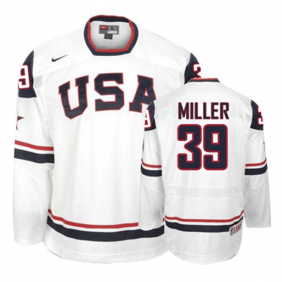 Men's Nike Team USA #39 Ryan Miller Authentic White 2010 Olympic Hockey Jersey