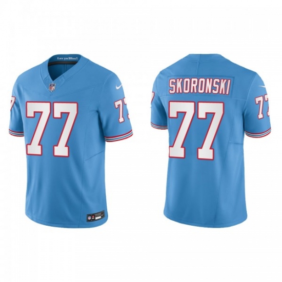 >Men's Nike Tennessee Titans #77 Peter Skoronski Light Blue 2023 F.U.S.E. Vapor Limited Throwback Stitched Football Jersey